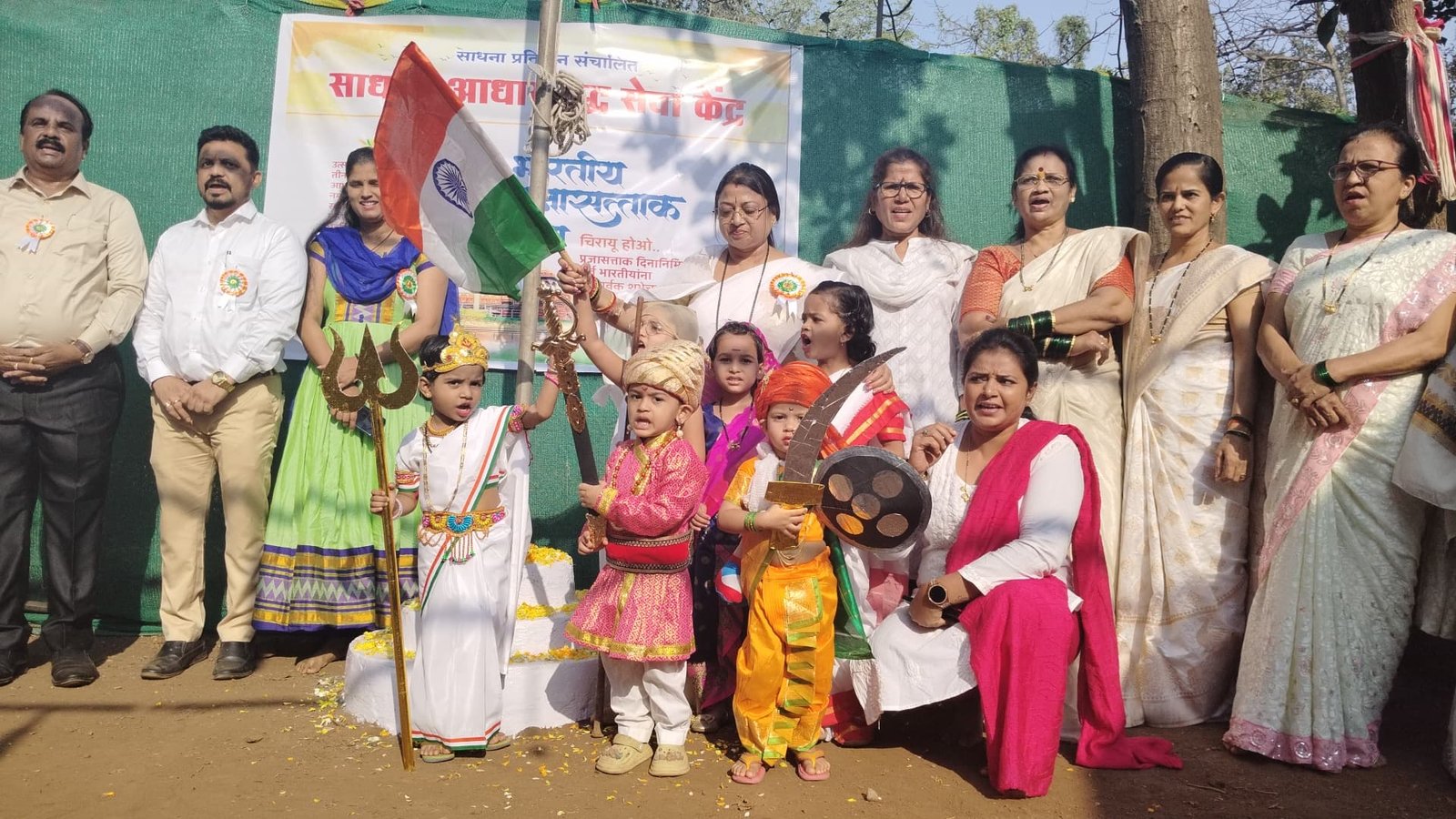डोंबिवली/प्रतिनिधी – साधना आधार वृद्ध सेवा केंद्रात 26 जानेवारी प्रजासत्ताक दिन साजरा करताना महाराष्ट्र नवनिर्माण सेना डोंबिवली महिला शहर अध्यक्षा मंदा पाटील, साधना आधार वृद्ध सेवा केंद्र संचालिका सुमेधा थत्ते, समाजसेवक भाई पानवडीकर, कैलास सणस, मनसे पदाधिकारी रोहन म्हात्रे यांसह अनेक मान्यवरांच्या उपस्थित ध्वजारोहन करण्यात आले. यावेळी लहान मुलांनी छत्रपती शिवाजी महाराज, राष्ट्रपिता महात्मा गांधी यांचा वेष परिधान केला होता. तर लहान मुली भारतमाता व झाशीची राणी बनल्या होत्या.