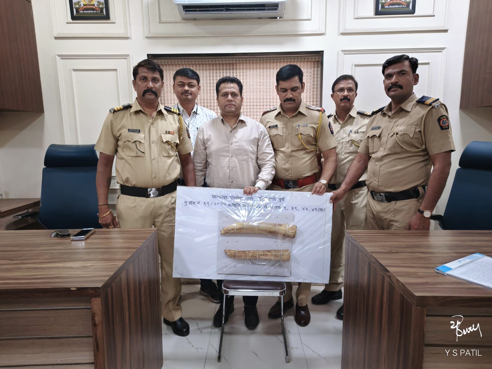 मानपाडा पोलिस ठाण्याचे प्रभारी विजय कडबाने यांनी सांगितले की, काही लोक हस्तिदंताची तस्करी करून त्याची विक्री करण्यासाठी येणार असल्याची माहिती पोलिसांना मिळाली होती. वरिष्ठ अधिकाऱ्यांना माहिती दिल्यानंतर पोलिस निरीक्षक (गुन्हे) राम चोपडा यांच्या पथकाने तुकाराम चौकाजवळ सापळा रचून दोन्ही तस्करांना अटक केली. झडतीदरम्यान या तस्करांकडून हत्तीचे दोन तुकडे जप्त करण्यात आले. पोलिसांनी तस्करांच्या दुचाकी आणि मोबाईल फोनही जप्त केले असून, त्याची किंमत १० लाख ६० हजार रुपये आहे. मानपाडा पोलिसांनी वन्यजीव संरक्षण कायद्यासह विविध कलमान्वये गुन्हा दाखल केला असून, या प्रकरणाचा तपास सचिन साळवी करत आहेत.